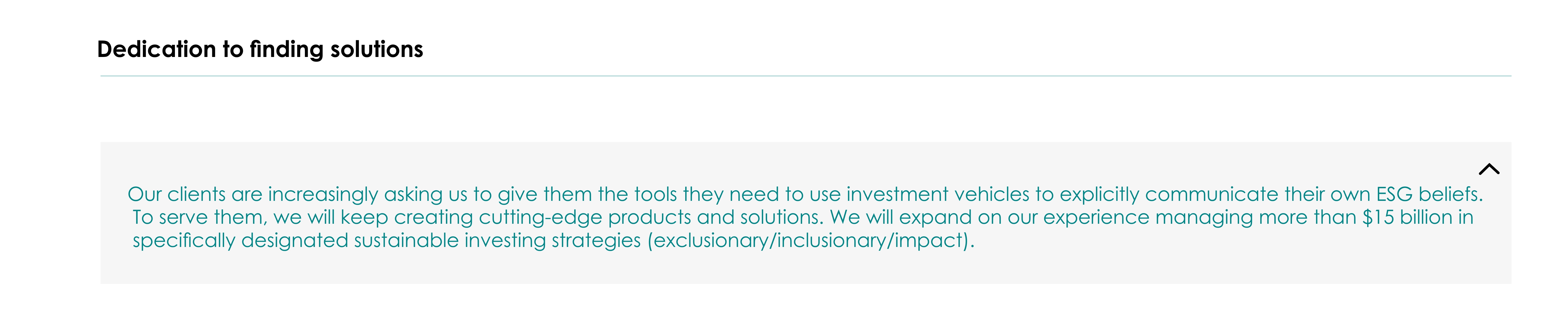 - We will expand on our experience as we manage more than $2 billion in dedicated ESG AUM. Currently, we are in charge of managing more than 115 ESG funds and mandates.